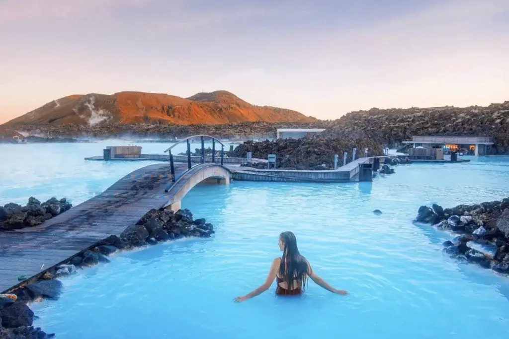 Στη συνέχεια μας περιμένει ένα από τα πιο εμβληματικά σημεία της χώρας, η παγκοσμίως γνωστή Blue Lagoon. Μια φυσική γεωθερμική λίμνη με γαλαζοπράσινα, ιαματικά νερά θερμοκρασίας 37–39°C, πλούσια σε μεταλλικά στοιχεία γνωστά για τις ευεργετικές τους ιδιότητες. Όσοι το επιθυμούν μπορούν (προαιρετικά) να απολαύσουν μια μοναδική εμπειρία χαλάρωσης μέσα σε ένα τοπίο που μοιάζει εξωπραγματικό.