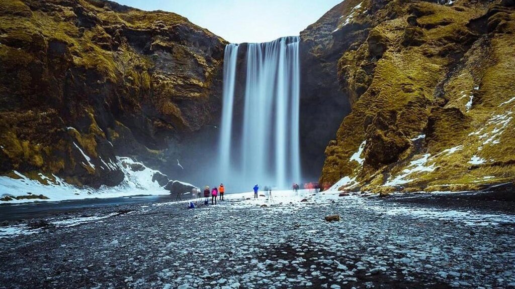 Επόμενος σταθμός, η θρυλική μαύρη παραλία Reynisfjara. Η αντίθεση της κατάμαυρης ηφαιστειακής άμμου με τα αφρισμένα λευκά κύματα του Ατλαντικού δημιουργεί ένα από τα πιο δραματικά σκηνικά της Ισλανδίας. Θα φωτογραφηθούμε στους εντυπωσιακούς βασαλτικούς σχηματισμούς Reynisdrangar, γνωστούς και από σκηνές της σειράς Game of Thrones, που κάνουν το τοπίο να μοιάζει εξωπραγματικό.