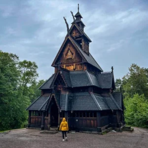 Πρώτη μας στάση, η Hopperstad Stave Church, μία από τις παλαιότερες ξύλινες εκκλησίες της Νορβηγίας, χτισμένη τον 12ο αιώνα. Η ιδιαίτερη αρχιτεκτονική της, με τις ξύλινες σκαλιστές λεπτομέρειες και τη μυστηριακή ατμόσφαιρα, μας μεταφέρει πίσω στον Μεσαίωνα.