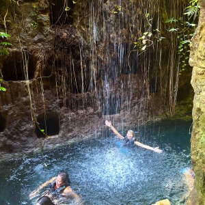 Στη συνέχεια, κατευθυνόμαστε σε ένα cenote, μια φυσική καταβόθρα γεμάτη κρυστάλλινα νερά, όπου θα έχουμε την ευκαιρία να κάνουμε μπάνιο και να δροσιστούμε μέσα σε ένα εκπληκτικό φυσικό σκηνικό.