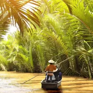 Επιβιβαζόμαστε στο λεωφορείο και αναχωρούμε για το Δέλτα του ποταμού Μεκονγκ, μια περιοχή γεμάτη ιστορία, πολιτιστική κληρονομιά και απαράμιλλη φυσική ομορφιά. Ο ποταμός Μεκόνγκ πηγάζει από το οροπέδιο του Θιβέτ, διασχίζοντας πολλές χώρες όπως την Κίνα, το Λάος, την Ταϊλάνδη και την Καμπότζη, πριν φτάσει στο Βιετνάμ και καταλήξει στην Θάλασσα της Νότιας Κίνας.