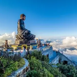 Μόλις φτάσουμε στον τελευταίο σταθμό του τελεφερίκ, θα χρειαστούμε περίπου 20-30 λεπτά πεζοπορίας για να ανέβουμε τα 600 σκαλοπάτια που οδηγούν στην κορυφή του Fansipan. Εκεί, θα σταθούμε μπροστά στο εμβληματικό ορόσημο της Ινδοκίνας, αγγίζοντας το υψηλότερο σημείο της χερσονήσου.